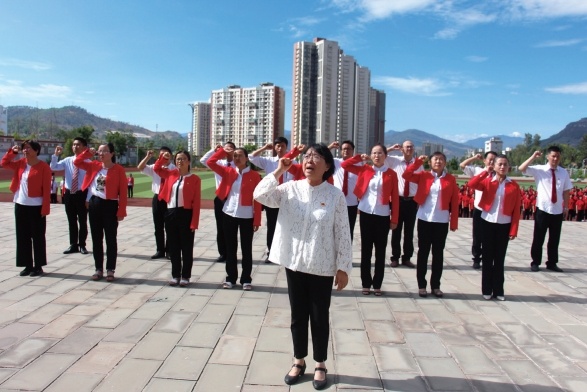 张桂梅带领师生向党宣誓,做党的好儿女。